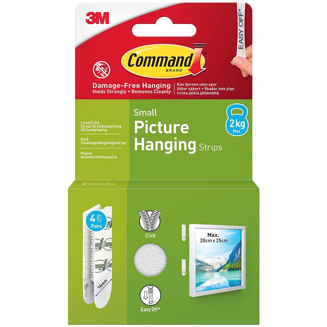 L’emballage contient 4 ensembles de bandes blanches et étroites. Peuvent supporter un cadre jusqu’à 2 kg et mesurant jusqu’à 20 x 25 cm.