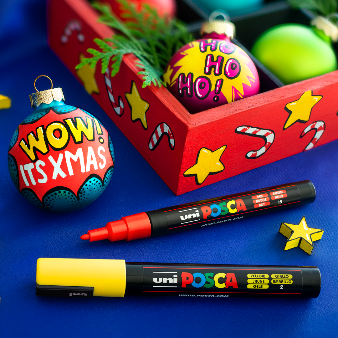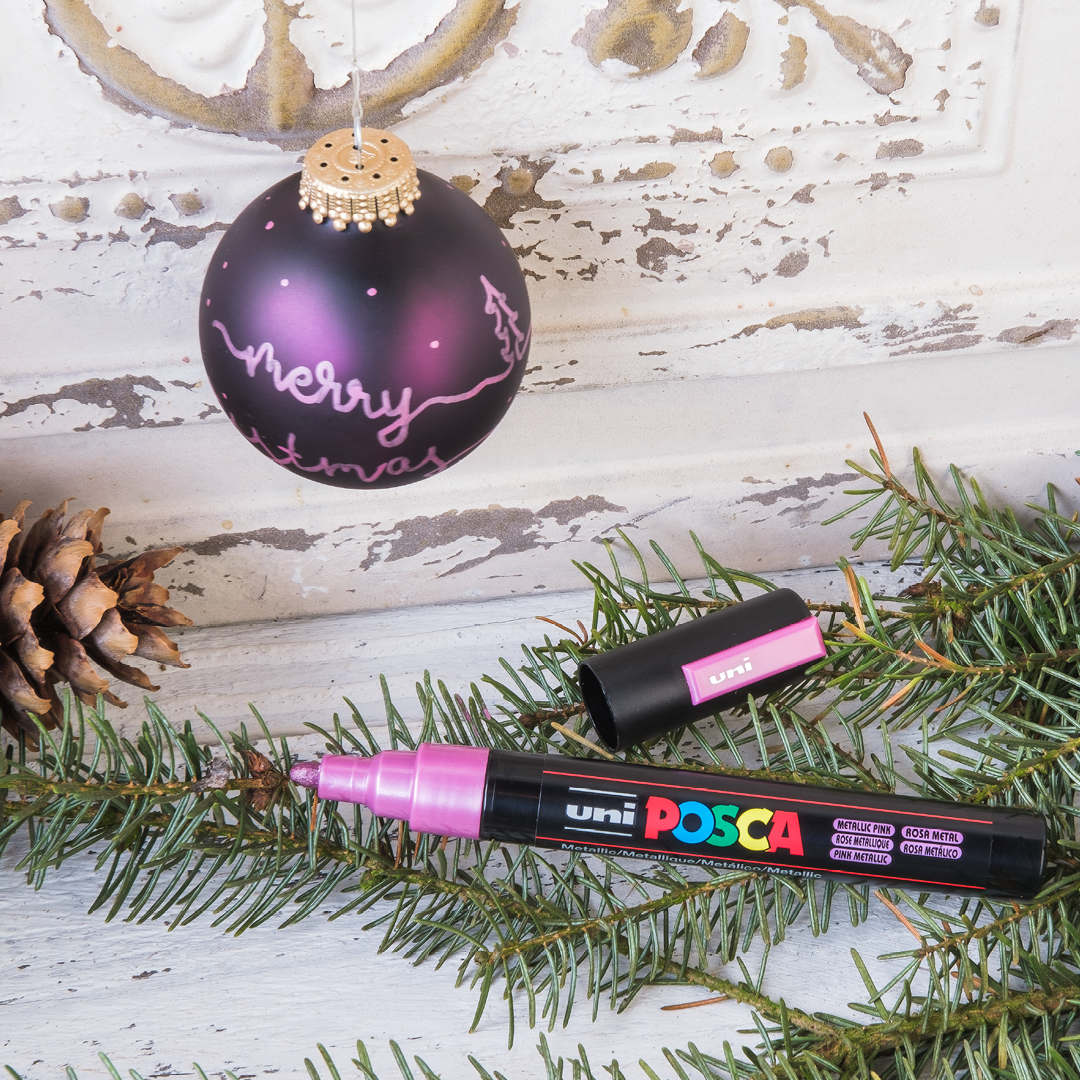 Le mieux, c’est la variété : mat, brillant, métal, verre ou papier mâché, Posca réagit un peu différemment sur chaque surface mais fonctionne sur toutes. Parfait pour décorer le sapin avec quelque chose qui ne ressemble pas à de la production de masse.