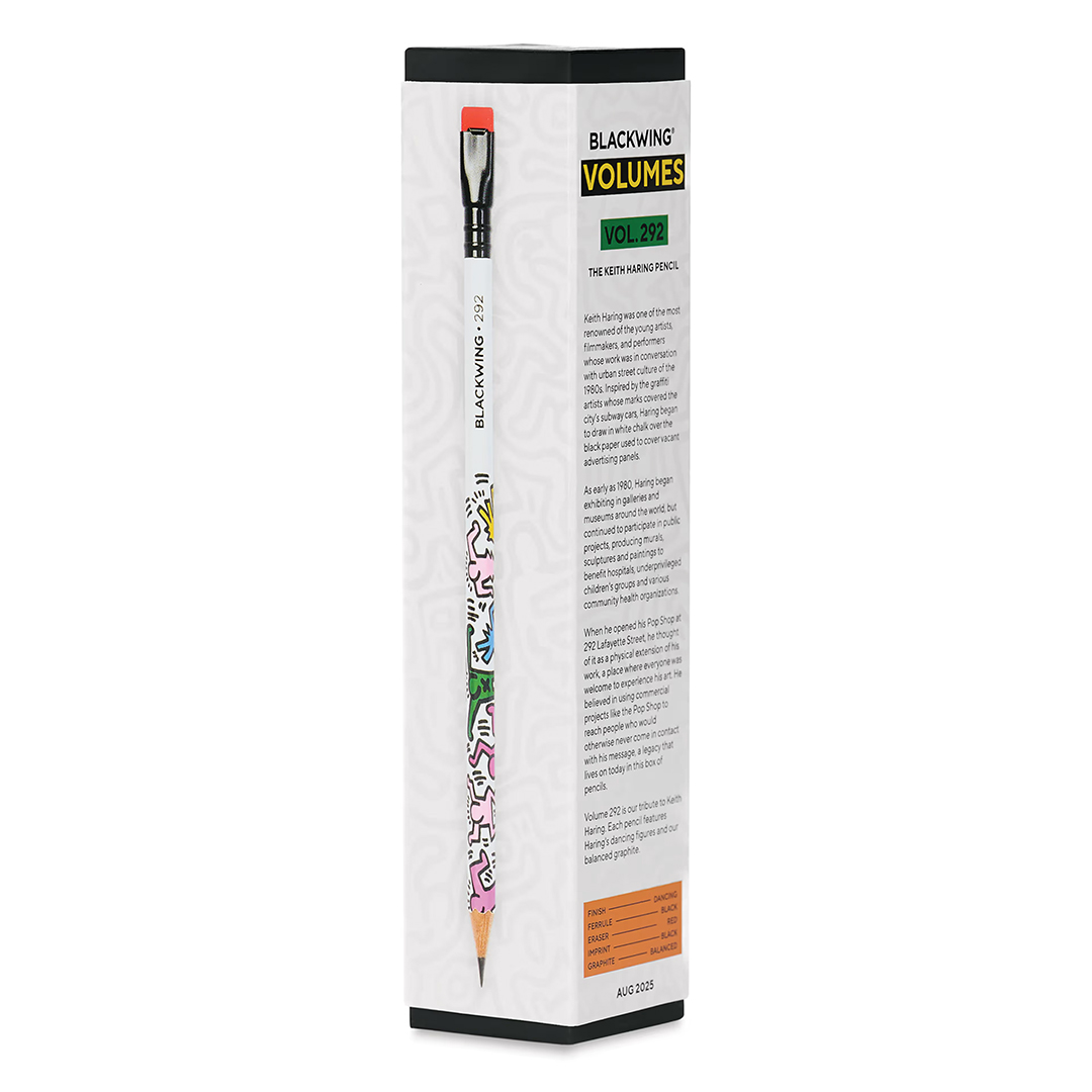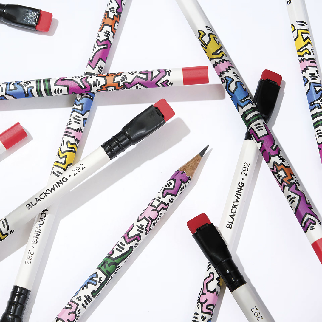Blackwing Vol. 292 est une édition limitée qui rend hommage à l'artiste iconique Keith Haring – l'une des voix les plus influentes de la scène artistique new-yorkaise des années 1980. Le crayon s'inspire de la légendaire Pop Shop de Haring au 292 Lafayette Street, où l'art a rencontré l'énergie de la rue et est devenu accessible à tous.