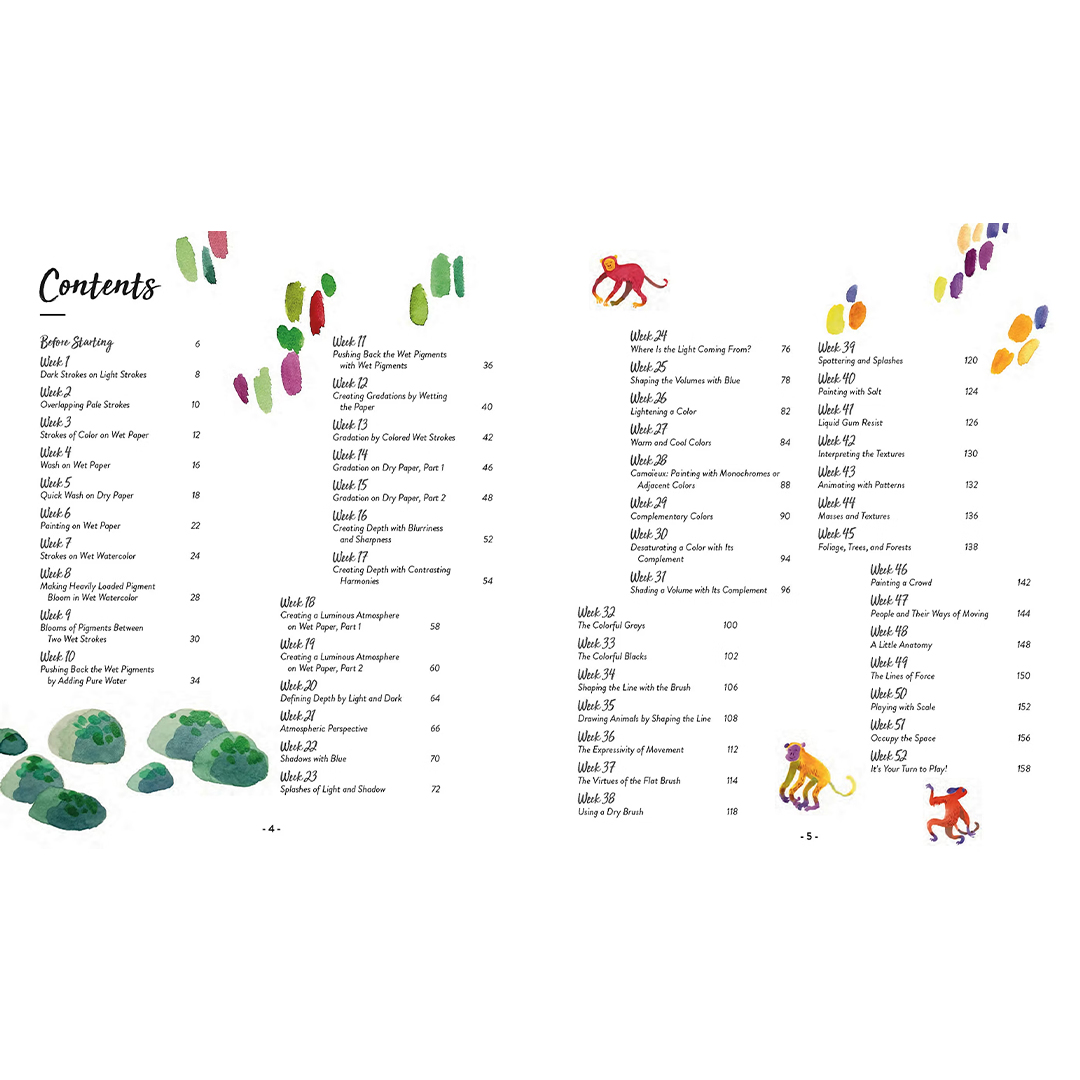 L’artiste et designer textile Lou Ripoll emmène les débutants dans un voyage enchanteur à l’aquarelle comprenant 52 projets pour toute l’année, où des lavis délicats et des couleurs vibrantes prennent vie.