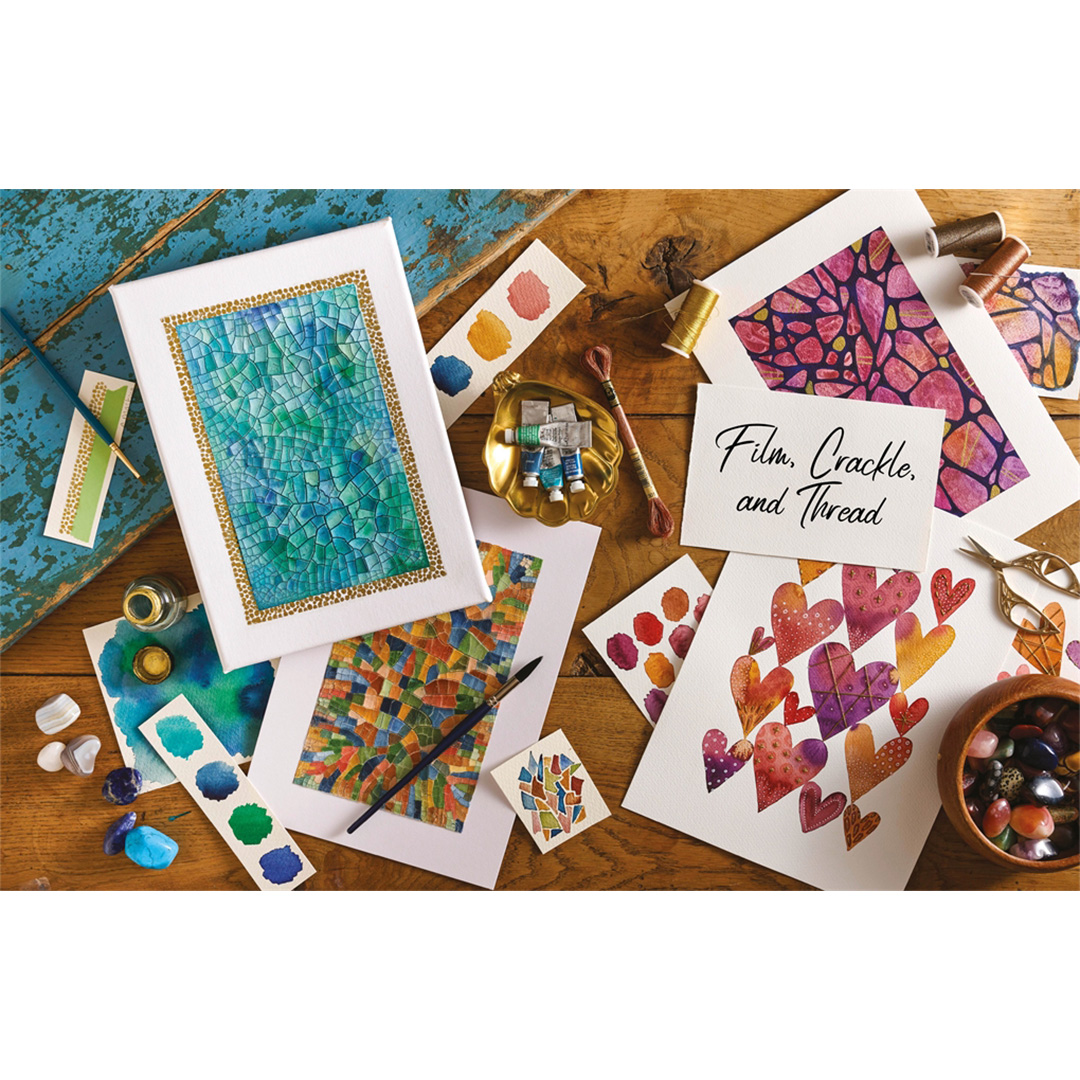Suivez le flux : relaxez-vous dans le processus, laissez naturellement l’aquarelle se répandre et s’accumuler pour aider à former vos compositions, puis ajoutez des embellissements en mixed media pour les porter au niveau supérieur.