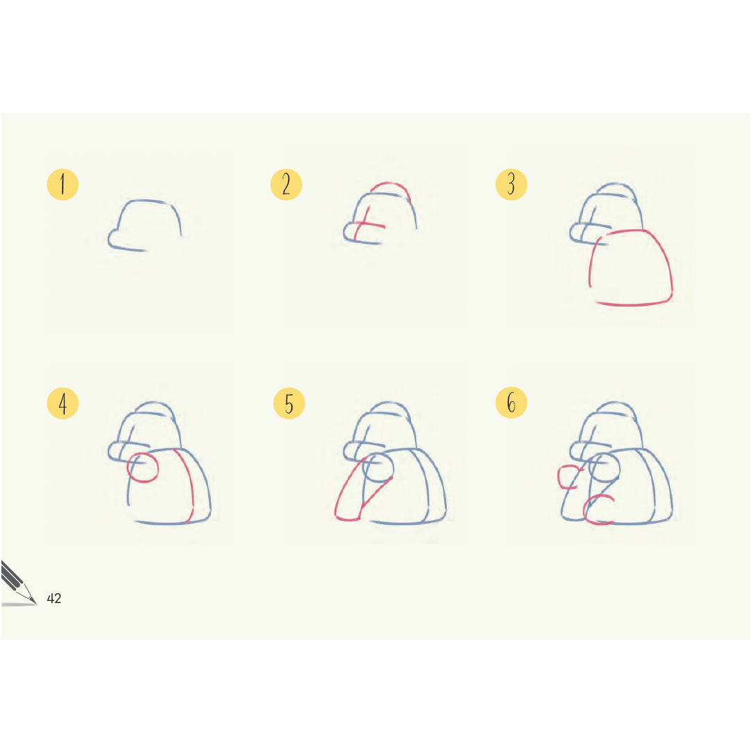 Grâce au format paysage facile à suivre, vous pouvez voir les étapes se construire sur la page, puis les reproduire facilement… Prenez simplement vos stylos préférés et commencez à dessiner !