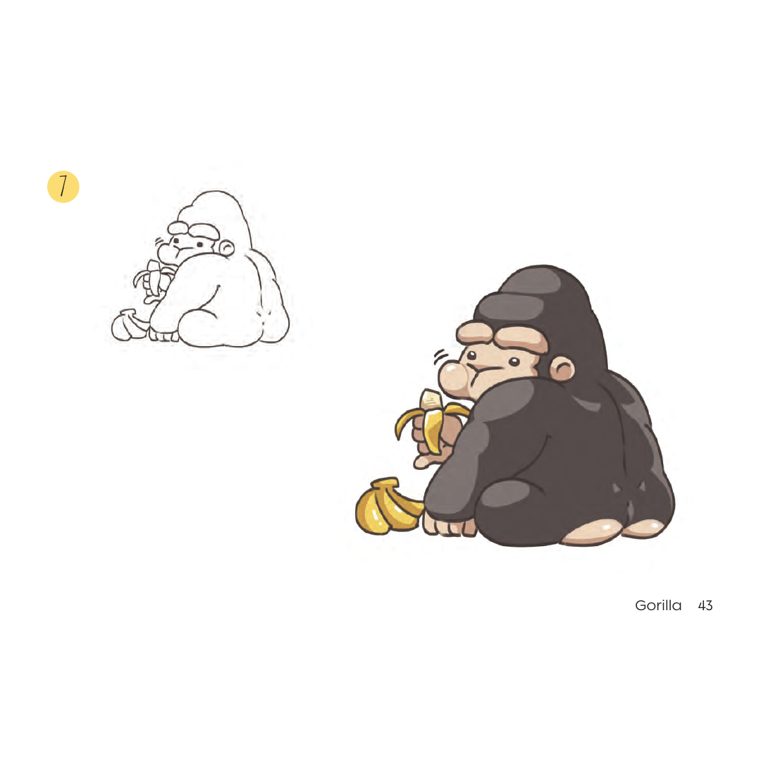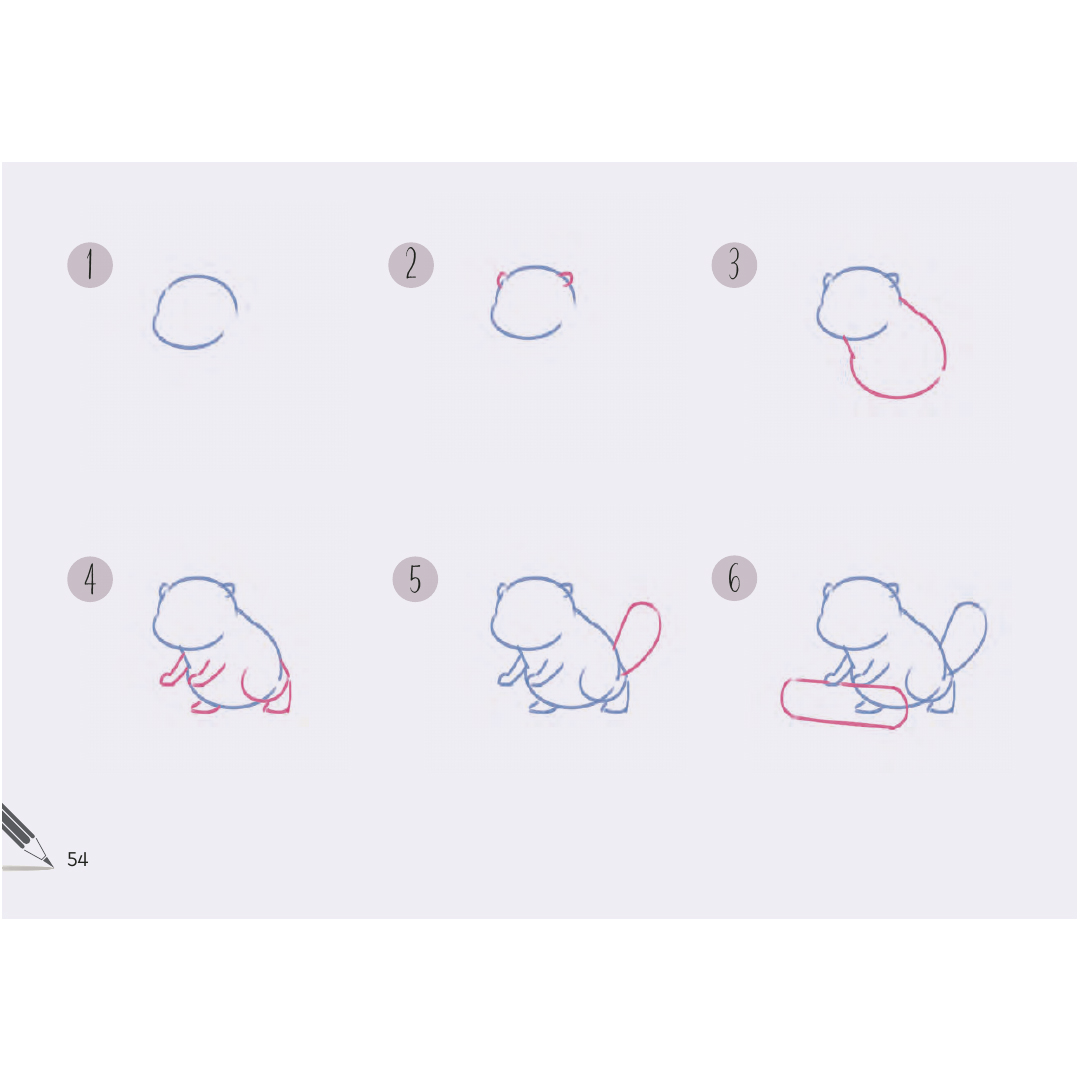 Chaque animal se construit en 8 étapes simples, d’un croquis des formes de base jusqu’au dessin final colorié, grâce à une méthode bicolore claire qui montre chaque étape.