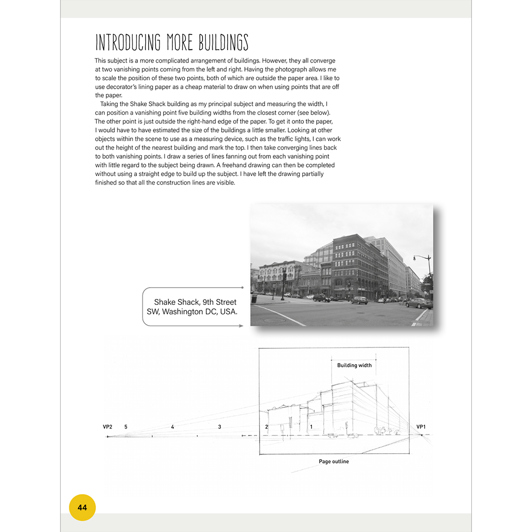 Tous les aspects de la perspective – du point zéro au multipoint – sont explorés et expliqués en des termes simples et accessibles. En plus des paysages et des bâtiments, vous apprendrez à appliquer la perspective aux personnes, animaux, bateaux, reflets et bien plus encore.