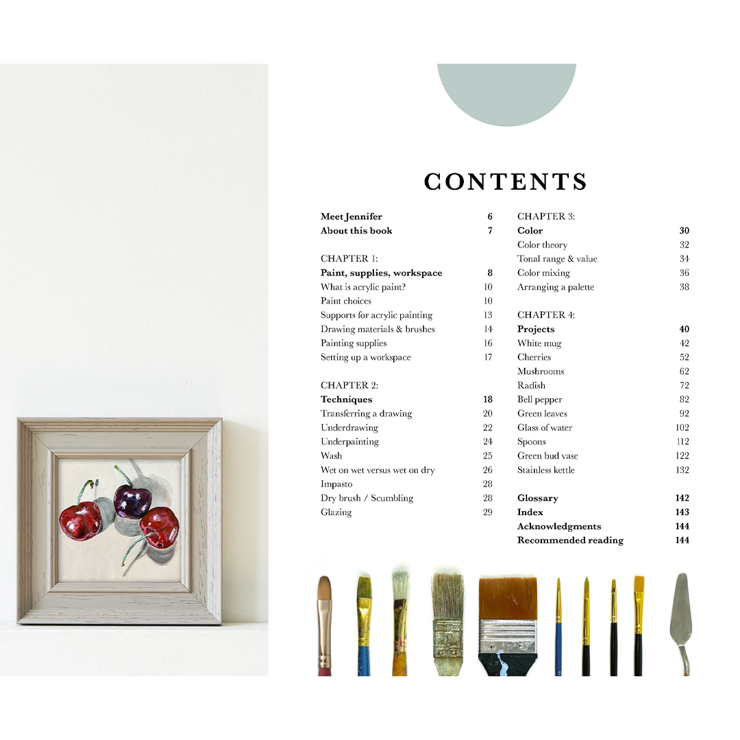 Guides pour débutants sur les petites natures mortes par Jennifer Funnell. Créez dix petites œuvres d’art captivantes grâce à cette introduction unique à la peinture acrylique.