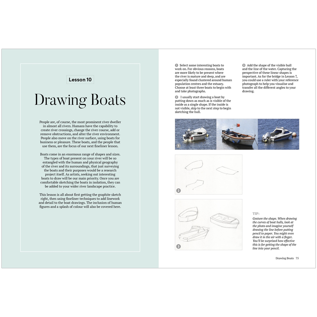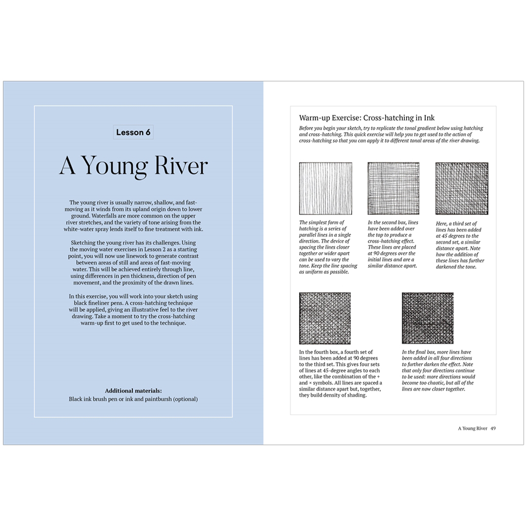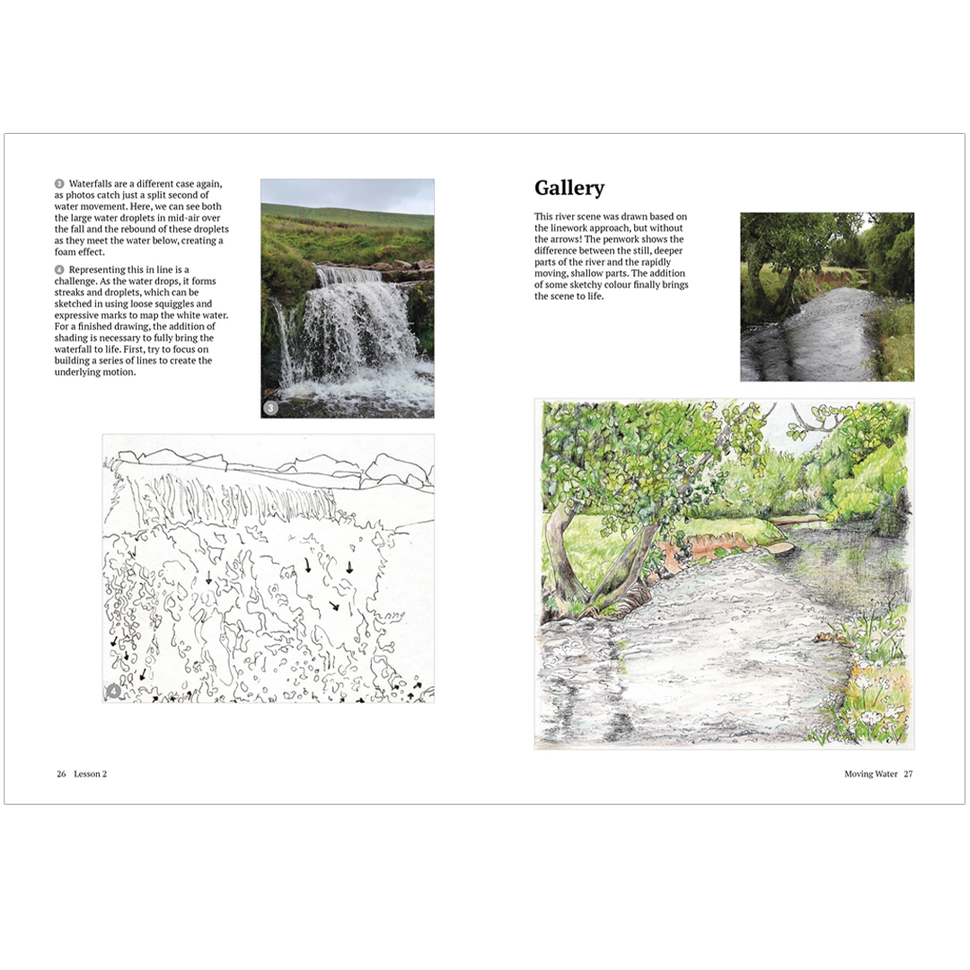 How to Draw a River vous montre comment capturer le flux de l’eau, la lumière et la texture – de sa source dans les montagnes jusqu’à son embouchure dans la mer.