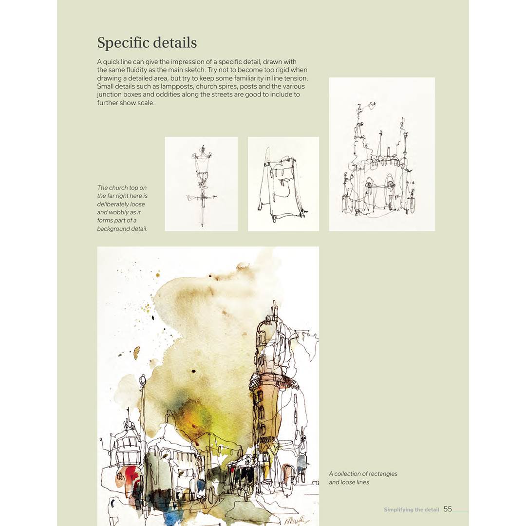 Riche en peintures inspirantes, démonstrations en plein air, exercices pratiques pour vous détendre et lâcher prise, ainsi que de nombreux conseils utiles, *Line & Wash in the Urban Landscape* constitue un guide complet et visuellement inspirant de cette forme d’art populaire.