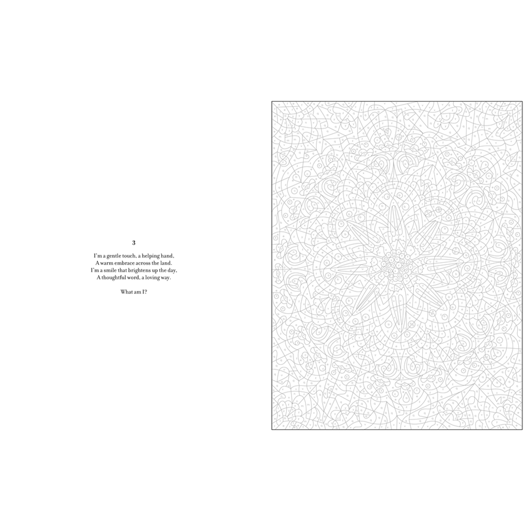 La dernière tendance en matière de coloriage, qui associe le plaisir de colorier au frisson de la surprise ! Chacune des 30 illustrations modernes présente un mandala qui se révèle au fur et à mesure que vous coloriez par numéros, ainsi qu’une énigme à méditer pendant que vous donnez vie à l’image. Une évasion captivante pour les amateurs de coloriage de tous niveaux.