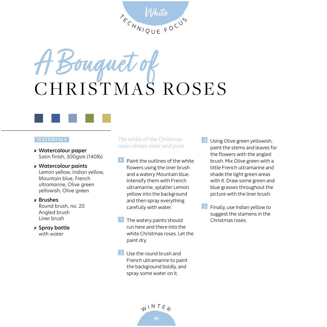 Peignez un paysage luxuriant de fleurs, de fruits et d’arbres – y compris un vase vibrant de fleurs printanières impatientes, des nénuphars rêveurs flottant sur un étang calme une soirée d’été, une forêt dorée et une récolte automnale abondante, et terminez par un lis étoilé rose étincelant avec des feuilles givrées marquant l’arrivée de Noël et la fin de l’année. Chaque peinture est réalisée à l’aquarelle dans le style libre et délicat de l’auteure.
