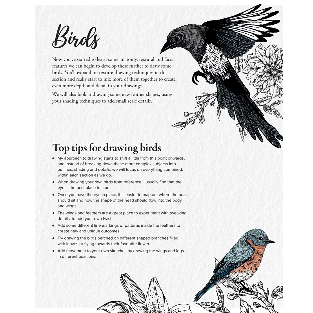 Apprenez à dessiner la flore et la faune pas à pas avec Joy-Louise Robinson.