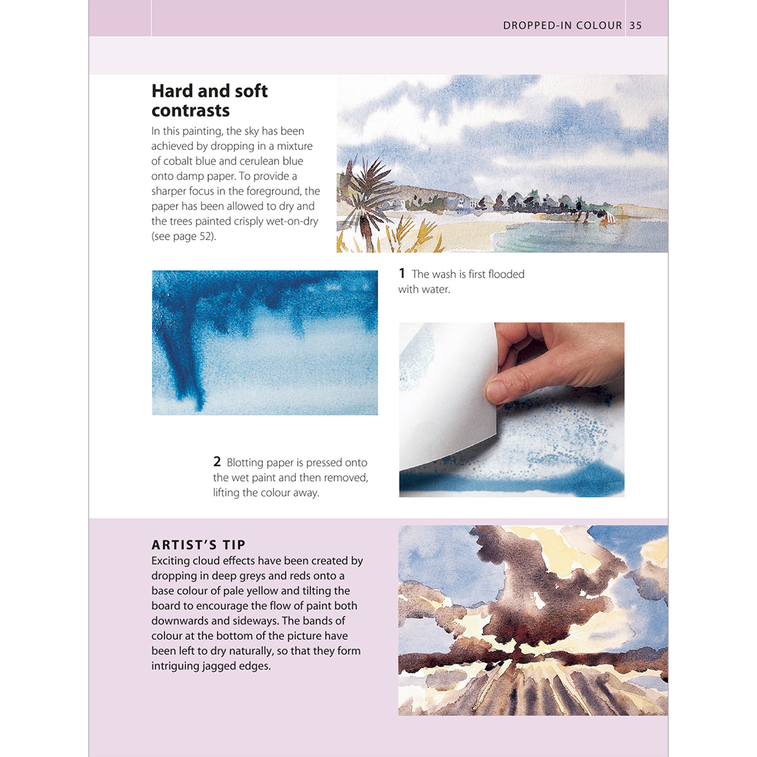 Apprenez les techniques essentielles de l’artiste aquarelliste – de la composition, du maniement du pinceau et des fondus aux effets spéciaux tels que le pointillé et la brillance.