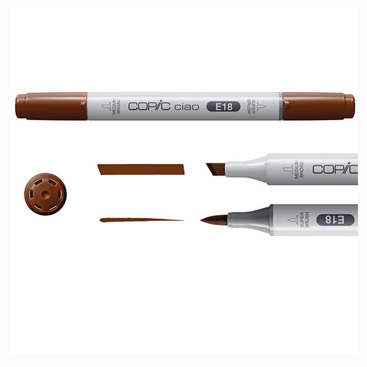 Ce coffret contient 6 couleurs : E18, E25, E59, E79, 100 + Copic Multiliner 0.3