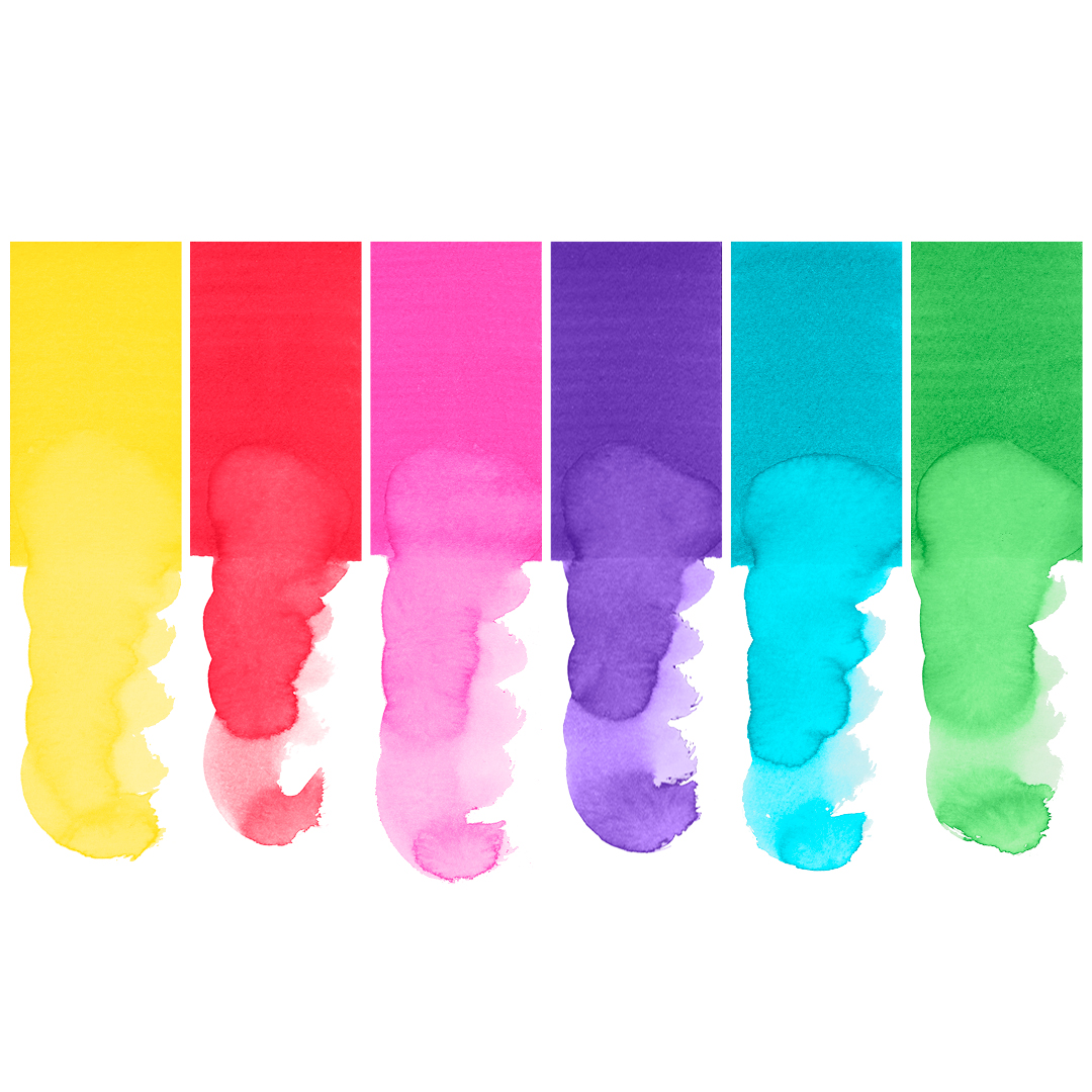 L'encre est à base d'eau, ce qui signifie qu'elle ne déteint pas sur le papier, et soluble dans l'eau, ce qui signifie qu'elle peut être utilisée pour créer des effets d'aquarelle sur le papier.