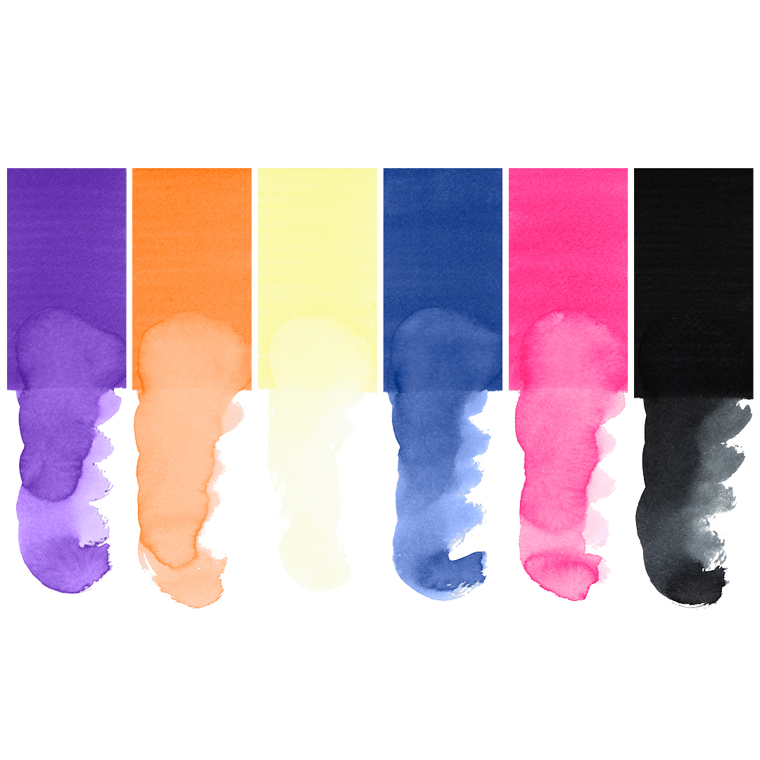 L'encre est à base d'eau, ce qui signifie qu'elle ne déteint pas sur le papier, et soluble dans l'eau, ce qui signifie qu'elle peut être utilisée pour créer des effets d'aquarelle sur le papier.