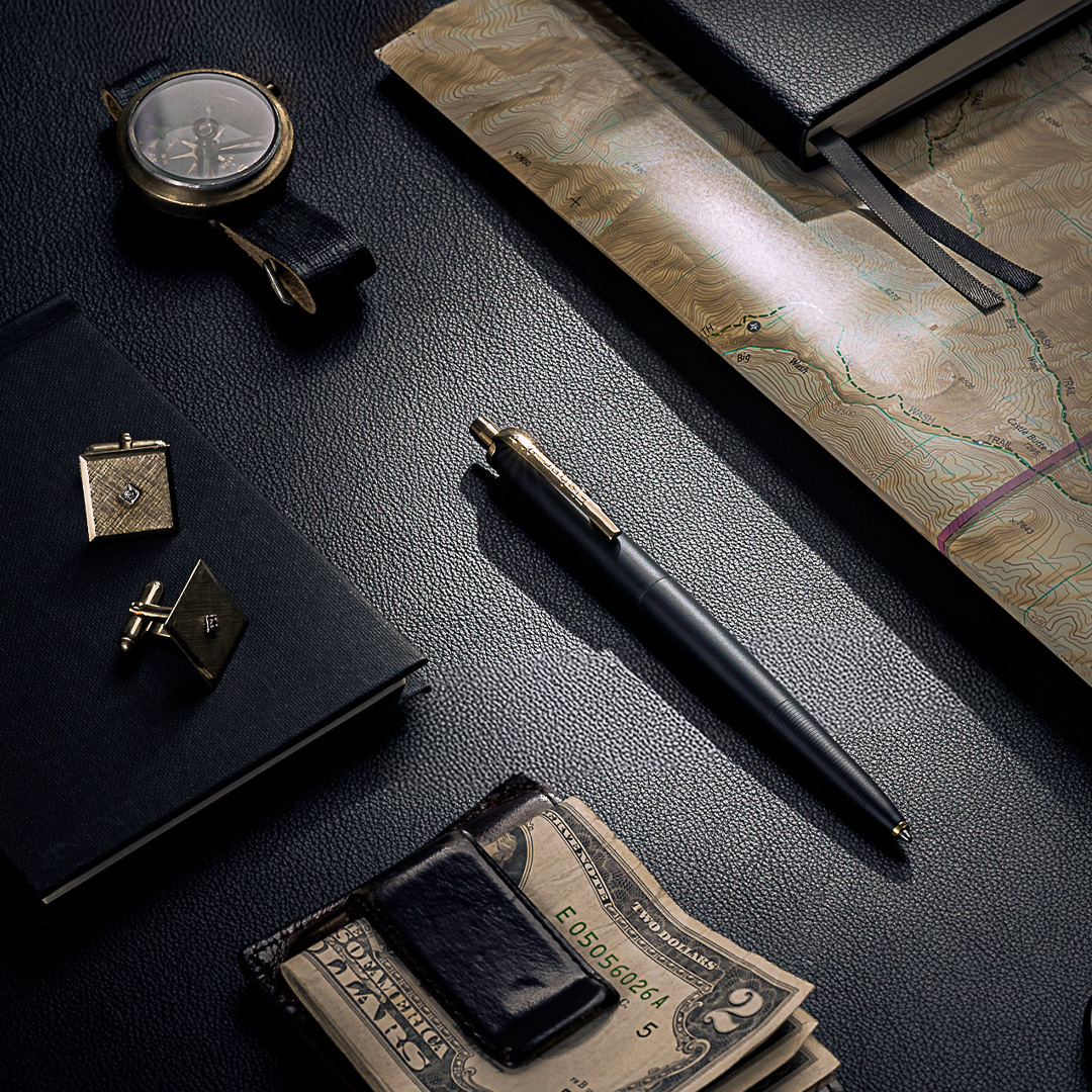 Le stylo possède un corps massif en laiton avec finition Cerakote graphite noir et des détails plaqués titane-nitride dorés. Il est entièrement réalisé en métal ce qui lui confère un poids parfaitement équilibré.