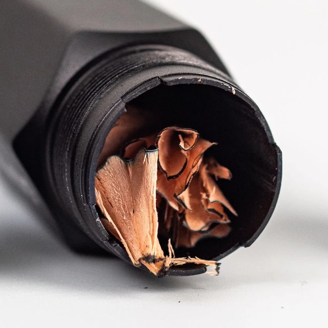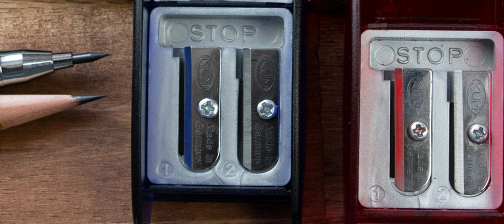 Un modèle astucieux à deux ouvertures : la première pour retirer le bois et dégager la mine, la seconde pour façonner la pointe avec précision. Cette conception offre un meilleur contrôle, réduit le risque de casse et prolonge la durée de vie du crayon.