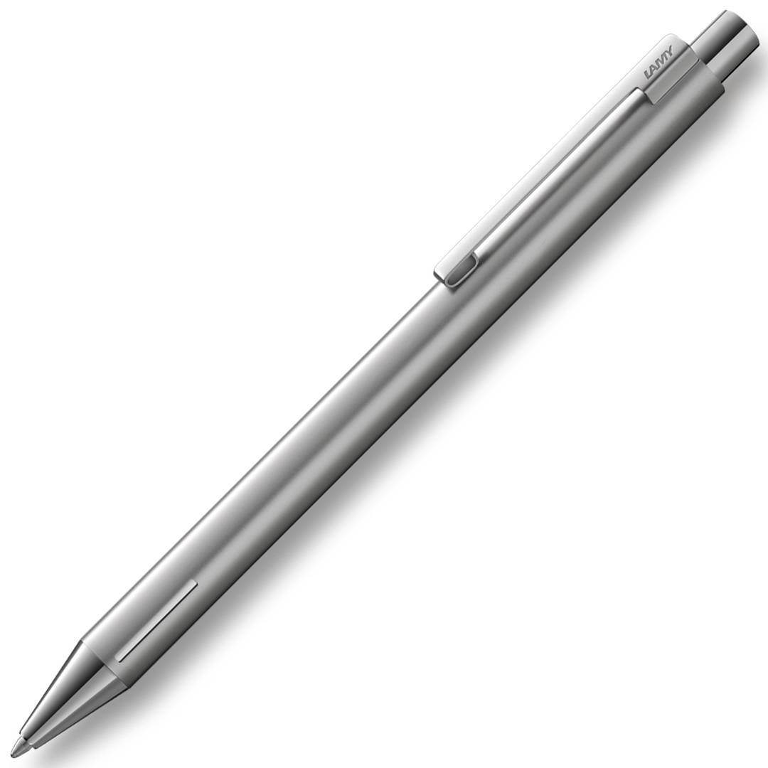 Econ a un corps épuré et cylindrique en acier inoxydable décapé au sable. Clip en métal avec une forme esthétique et caractéristique. Se recharge avec une recharge Lamy M 16. Livré avec une cartouche noire.