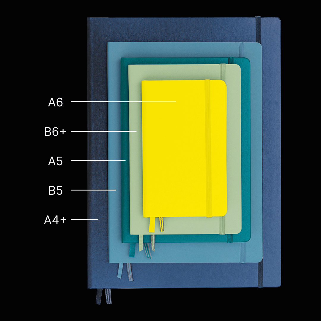 Le carnet contient 206 pages numérotées au format pointillé (dotted). Le papier épais et de haute qualité (120 g/m²) empêche toute traversée d’encre. Le format A5 offre amplement d’espace pour planifier, lister, dessiner et prendre des notes au quotidien. Trois rubans marque-pages colorés simplifient la navigation entre vos sections.