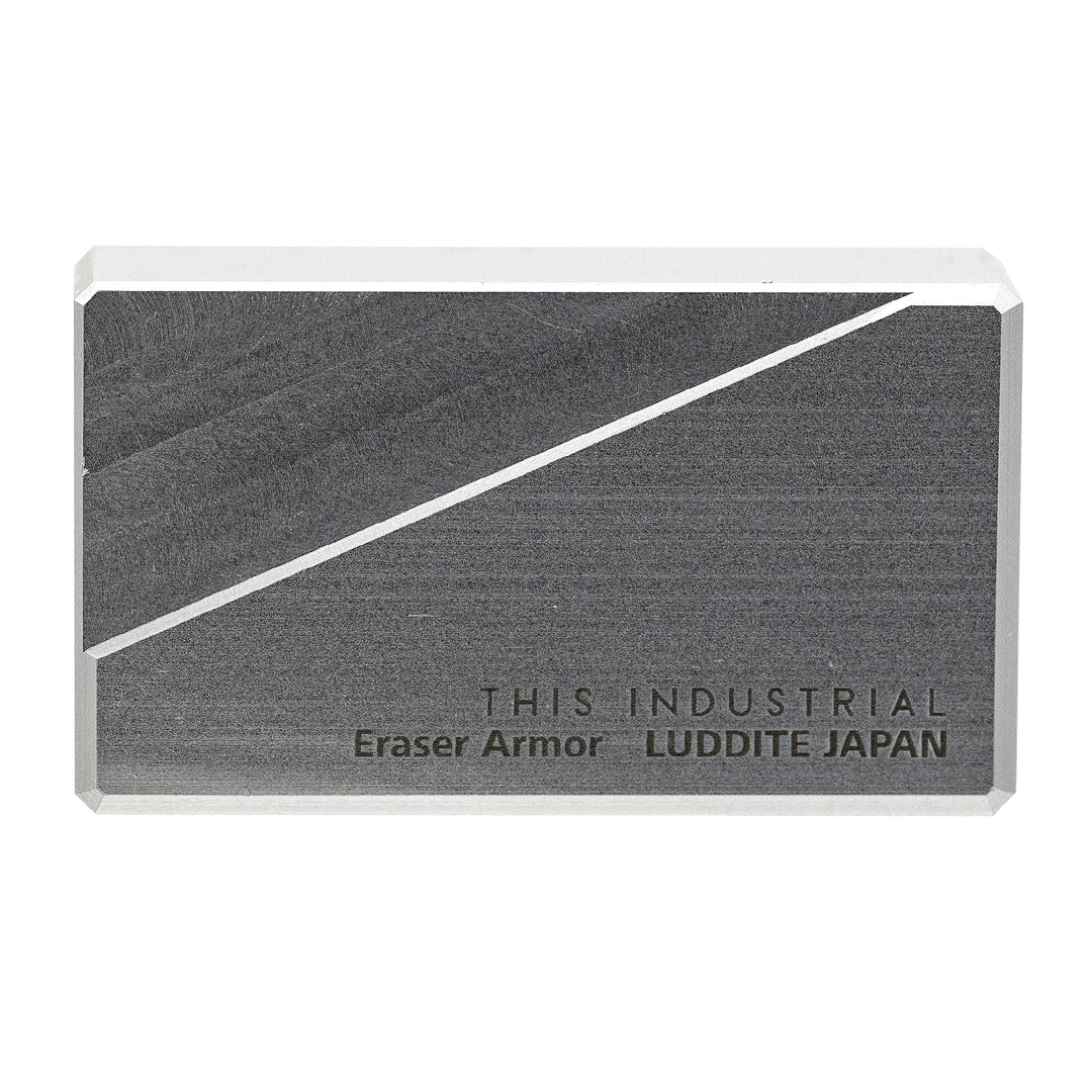 Étui à gomme au design industriel exclusif de LUDDITE Co japonais – un élégant étui en aluminium alliant robustesse et design minimaliste. Fabriqué au Japon par fraisage de précision en aluminium massif.