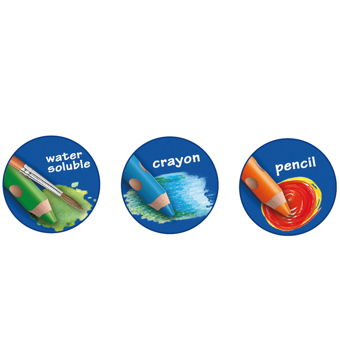 Woody 3-in-1 crayons de couleur lot de 18 + taille-crayon et pinceau (à partir de 3 ans)