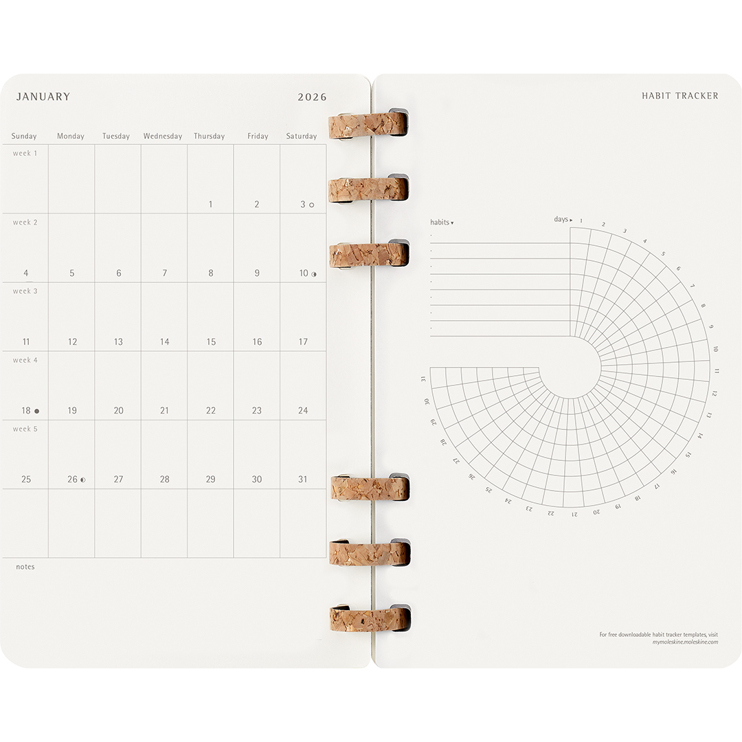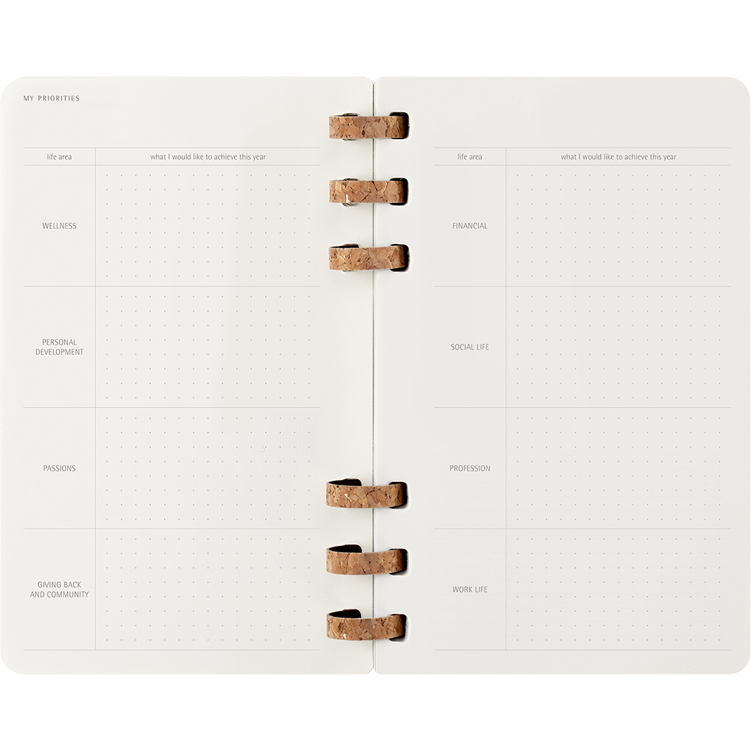 Avec un dos à spirale en liège tendance et fabriqué en papier 'Remake' 100g écologique et de haute qualité de la société italienne 'Favini Paper'. Combinant la planification mensuelle et hebdomadaire, ce calendrier offre beaucoup d'espace pour l'écriture et la planification et est bien conçu pour soutenir la vie étudiante.