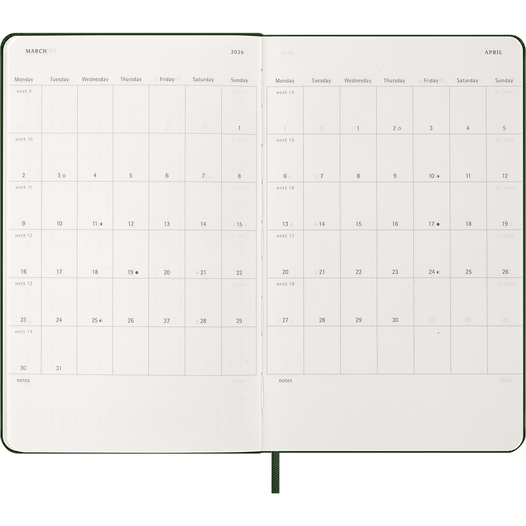 Calendrier 12M Weekly Notebook 2026 Hardcover Large Myrtle Green