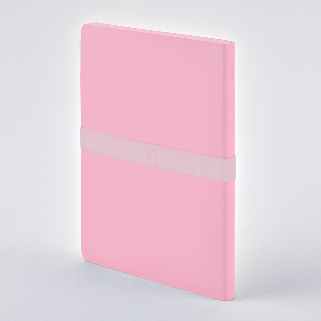 Le Nuuna Voyager L Light est un carnet premium format L au design unique et fabriqué avec des matériaux de haute qualité – parfait pour le travail créatif, le bullet journal et l’écriture quotidienne. Il possède une couverture souple en cuir recyclé, légère et flexible. Le carnet se ferme grâce à une bande élastique qui maintient aussi le stylo et le téléphone en place.