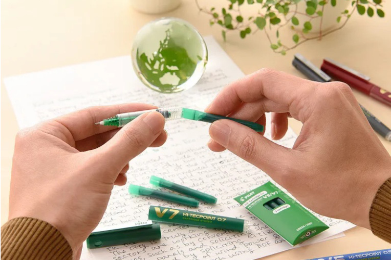 Changez la recharge, pas le stylo. Presque tous les stylos de la gamme Begreen sont rechargeables, ce qui réduit les déchets plastiques, diminue les émissions et prolonge la durée de vie du stylo. Sur chaque page produit, le bon rechargement est indiqué pour vous faciliter la tâche.