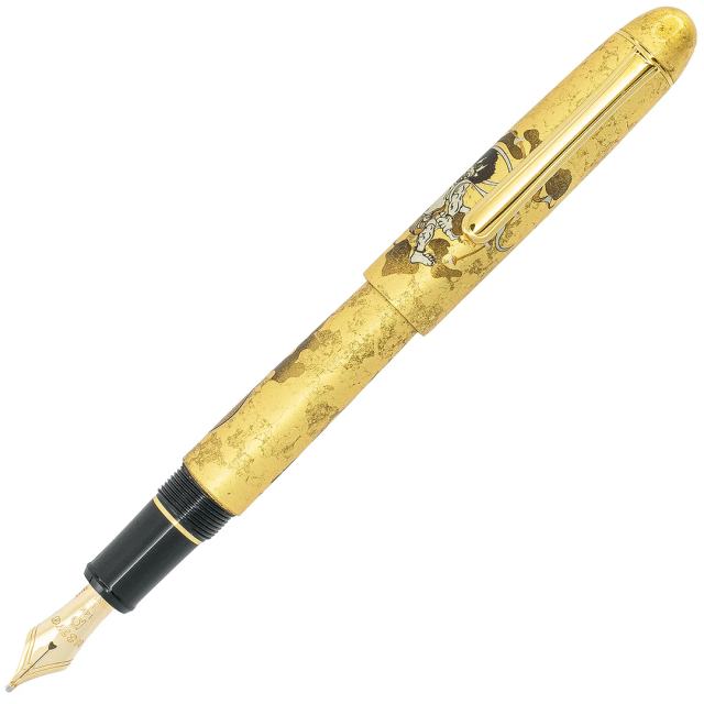 Le design de chaque manche de stylo est unique grâce au processus d'application manuelle des motifs ; chaque Fujin (dieu du vent) et Raijin (dieu du tonnerre) est subtilement différent. Avec l'application totalement unique de la feuille d'or, cela signifie que aucun stylo n'est identique.