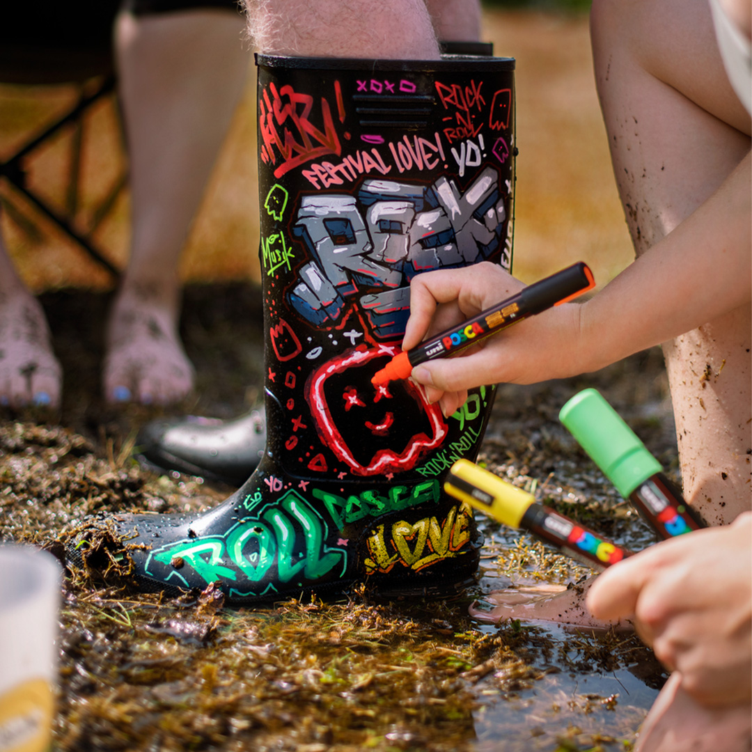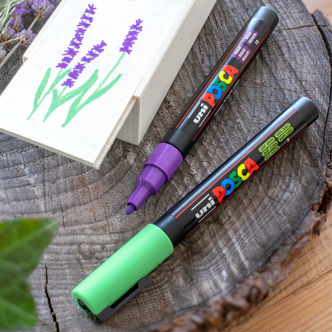 Posca est un marqueur acrylique iconique et polyvalent, apprécié par les artistes, les amateurs et les créateurs du monde entier. Les marqueurs sont remplis d’encre à base d’eau, opaque, qui donne vie à vos idées – même sur des surfaces sombres ou transparentes.