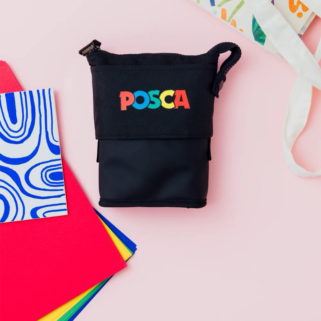 En abaissant la partie supérieure de l’étui à stylo, celui‑ci se transforme en un porte‑stylo stable. Il peut contenir jusqu’à 16 Posca PC‑5M.