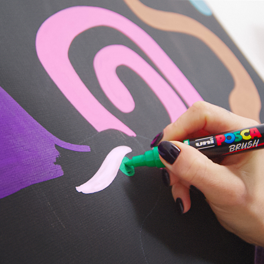 Le marqueur convient aussi bien pour des remplissages rapides que pour des détails précis, et possède une pointe réversible qui prolonge sa durabilité. En substance, le Posca PC-5BR est identique au populaire PC-5M : même design, même couleur opaque à base d’eau et même sensation en main. Avec la nouvelle pointe pinceau, vous bénéficiez du meilleur des deux mondes. La pointe est ferme et régulière comme un marqueur classique, mais aussi souple, offrant une sensation plus picturale.