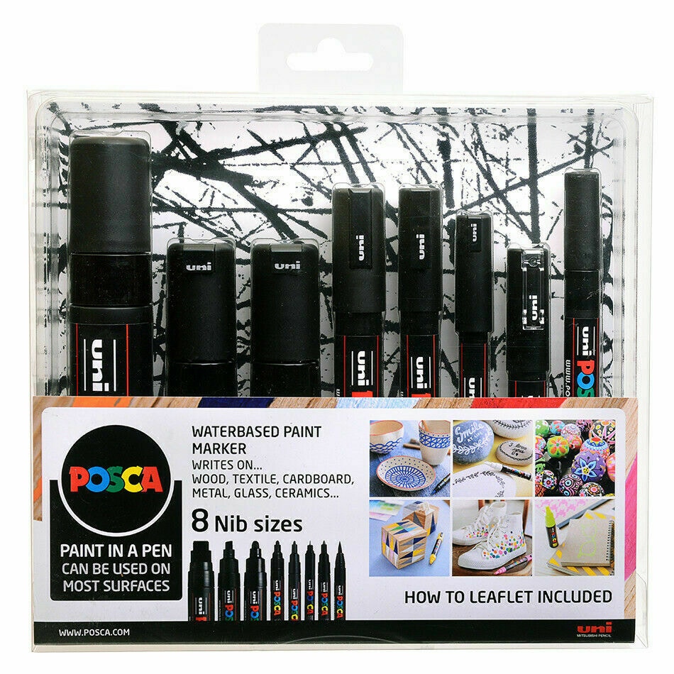 Ce lot comprend 8 stylos noirs de tailles : PC17K (15 mm), PC8K (8 mm), PC5M (1,8-2,5 mm), PC3M (0,9-1,3 mm), PC1M (1 mm), PC1MR (0,7 mm), PC-7M (4,5-5,5 mm) PCF350 (pointe pinceau).
