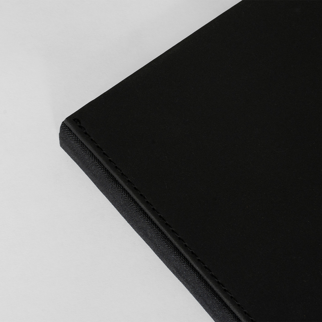 La couverture est en cuir végétalien avec une reliure en tissu de chanvre. Le carnet est cousu, ce qui lui permet de rester bien à plat lors de l’utilisation. À l’arrière se trouve une poche pratique pour ranger des feuilles ou des notes volantes. Il est également muni d’un élastique qui garde le carnet fermé et protège les pages lorsqu’il n’est pas utilisé.