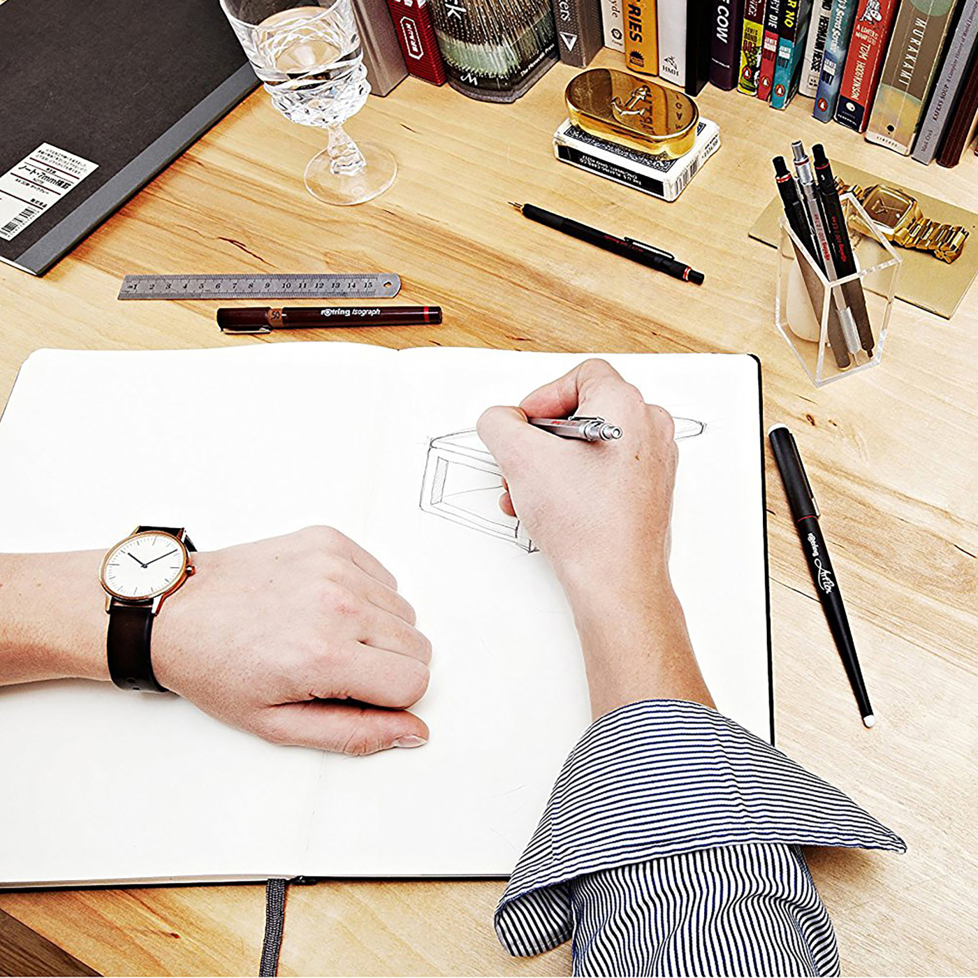 Rotring poursuit le développement de ses porte-mines classiques. Le tube de support du Rotring 800 est fixe, ce qui permet une précision à 100 %, mais il est en même temps rétractable avec un mécanisme de rotation. Le corps en métal bien équilibré est hexagonal et la partie inférieure comprend des rainures pour la meilleure prise possible.