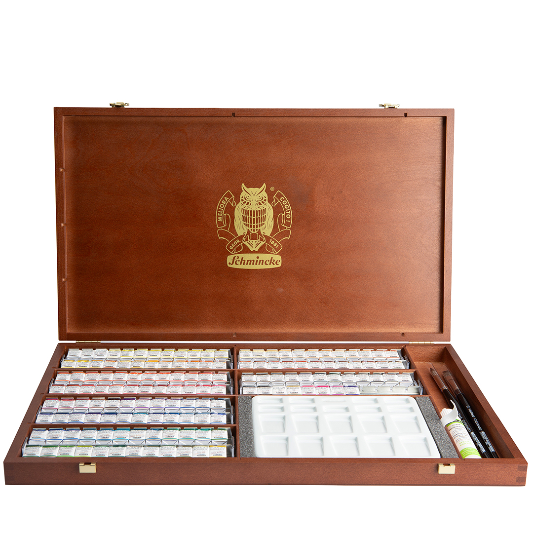 Depuis 1881, Schmincke produit en Allemagne les meilleures peintures pour artistes, et ce coffret vous offre un ensemble complet de toutes les couleurs de la gamme.