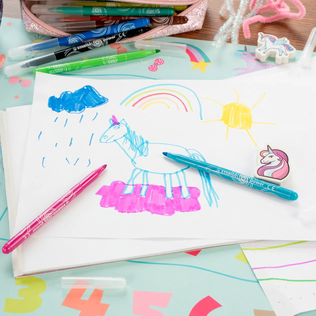 Le Power peut rester sans capuchon jusqu’à 8 semaines, un record de durée “cap-off”. La pointe est solide et conçue pour résister à une forte pression lorsque le petit artiste dessine avec intensité.
