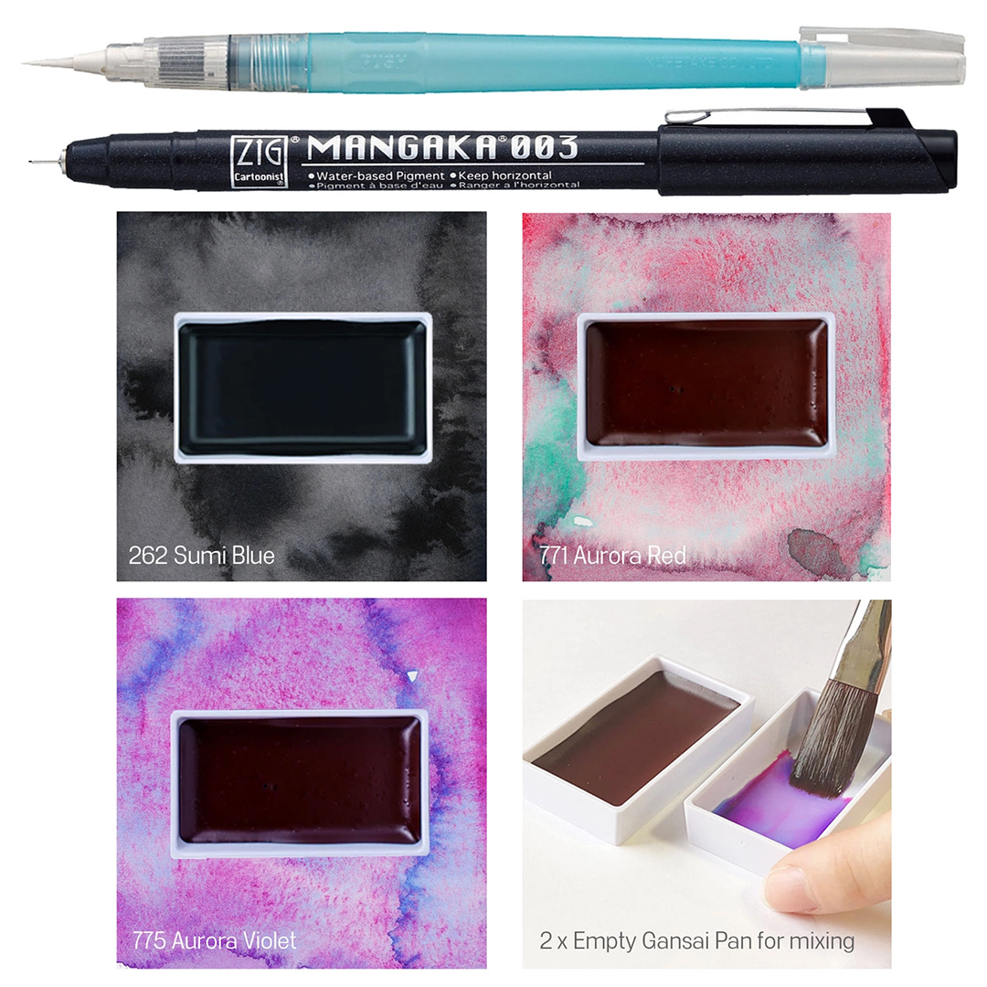 - 2 Couleurs granuleuses Gansai Tambi : Aurora Red (771) / Aurora Violet (775)